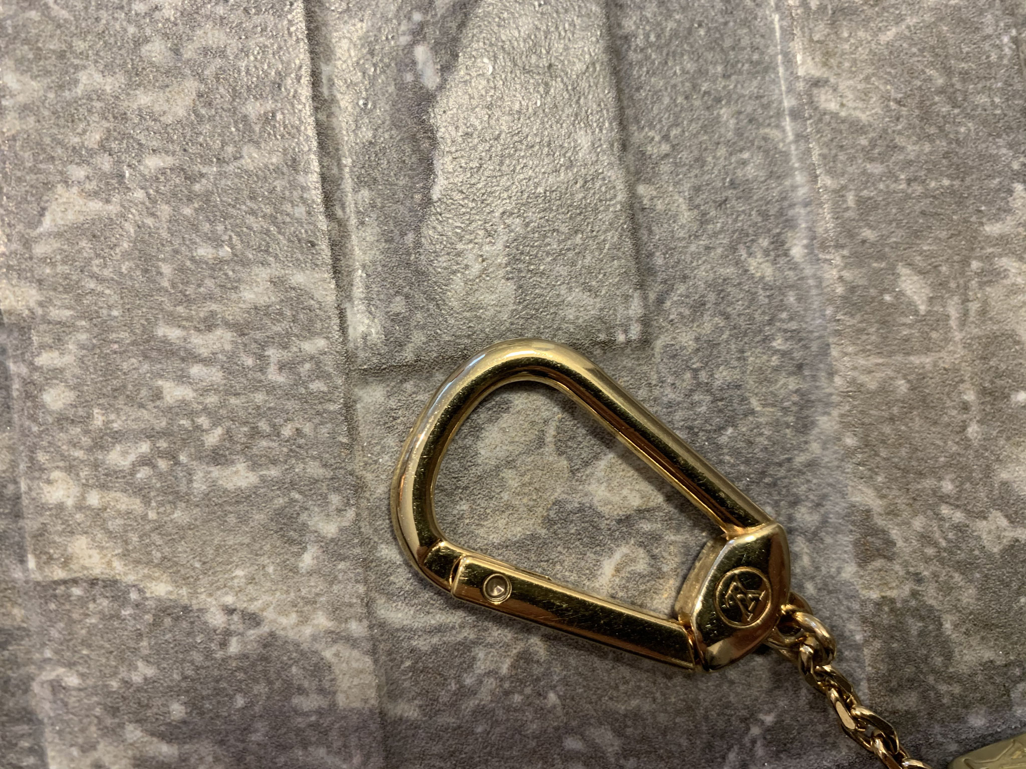 Die goldfarbenen Metallbeschläge weisen kleine Kratzer/matt geriebene Stellen etc. auf.