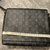 Die Ecken sind leicht angerieben, die silberfarbenen Metallbeschläge weisen Kratzer auf und im Innenraum sind nur wenige kleine Flecken zu finden.