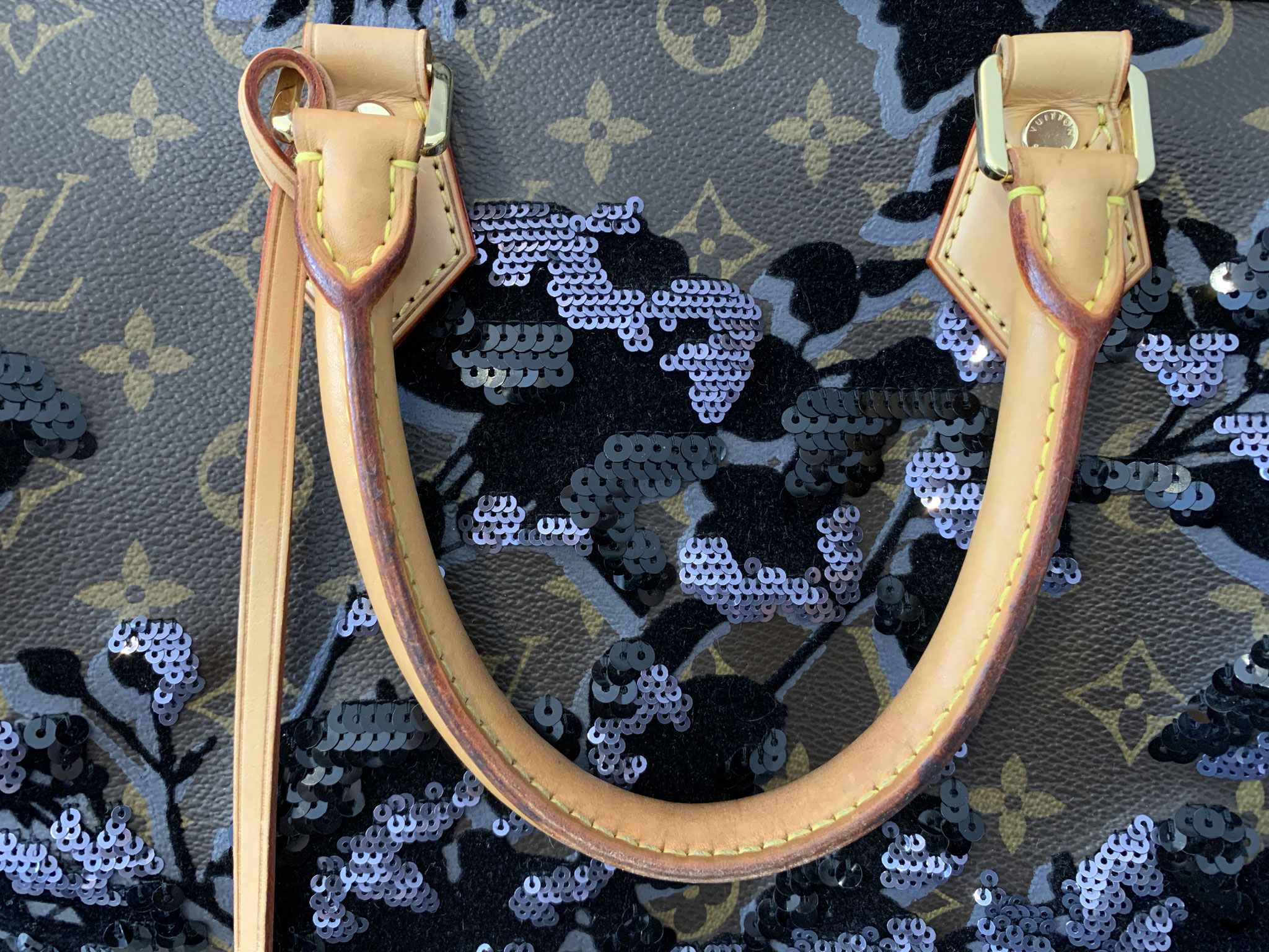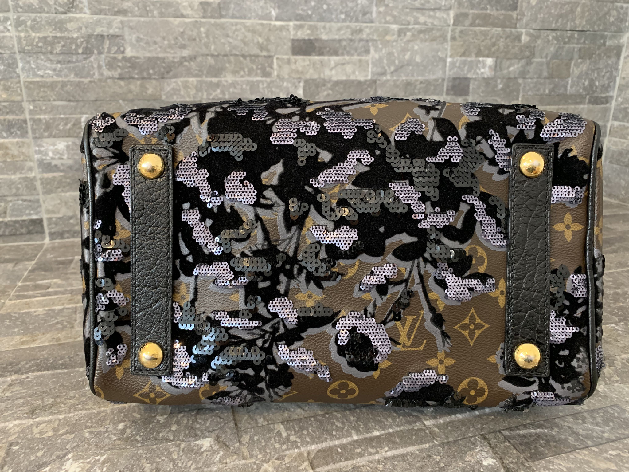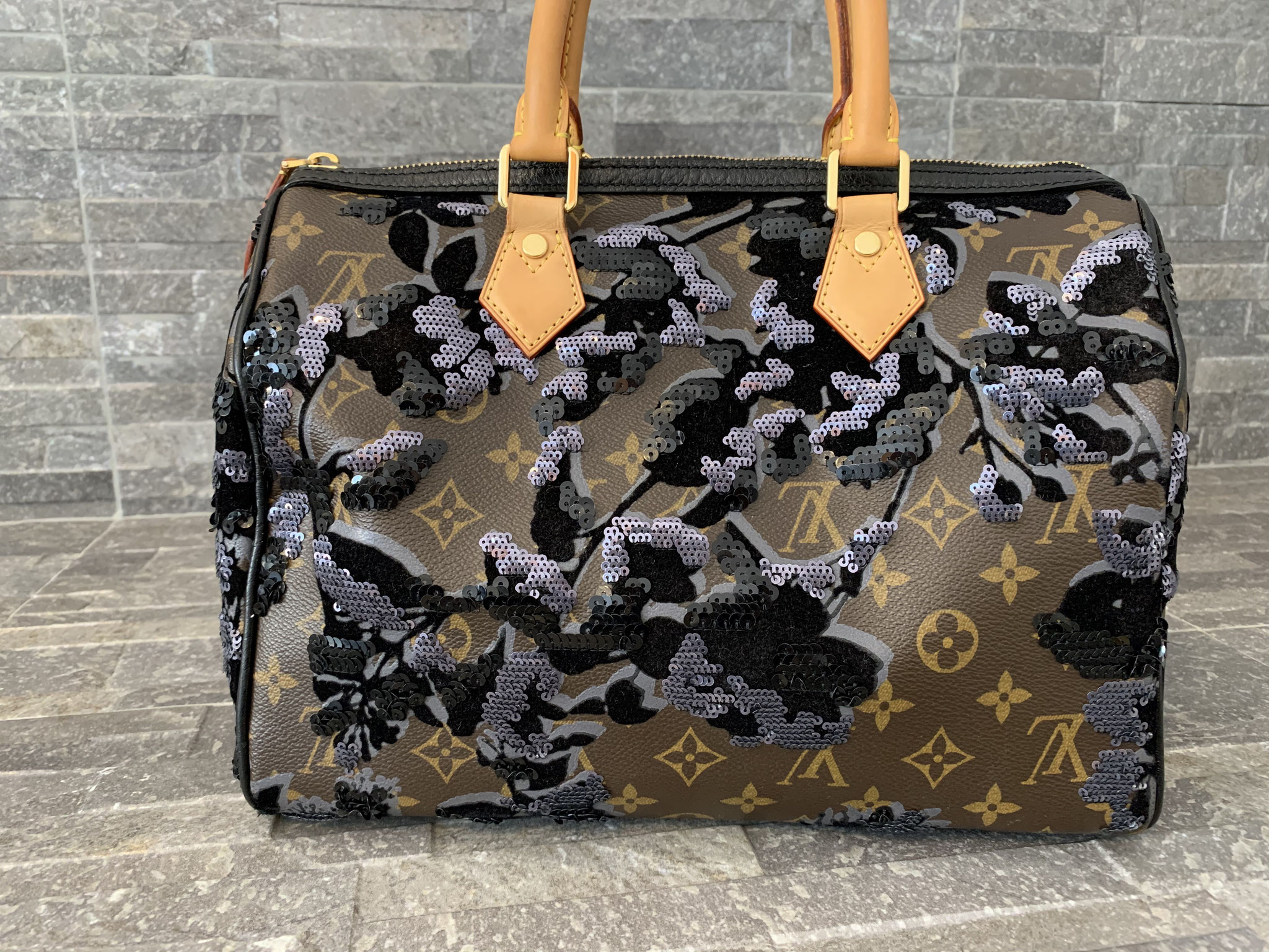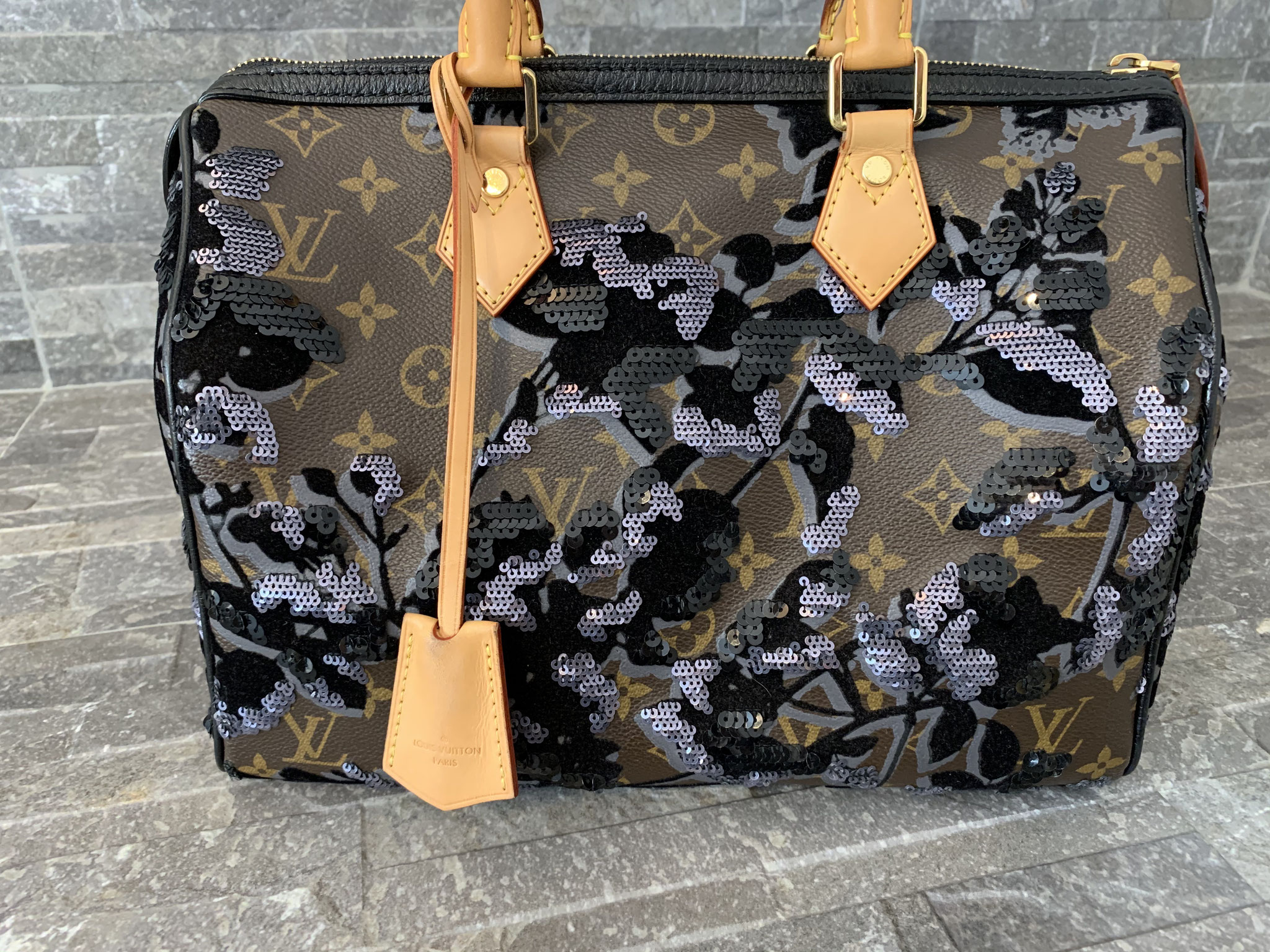 Louis Vuitton Monogram Fleur De Jais Speedy 30, abnehmbares Schlüsselglöckchen, Schloss, 1 Schlüssel