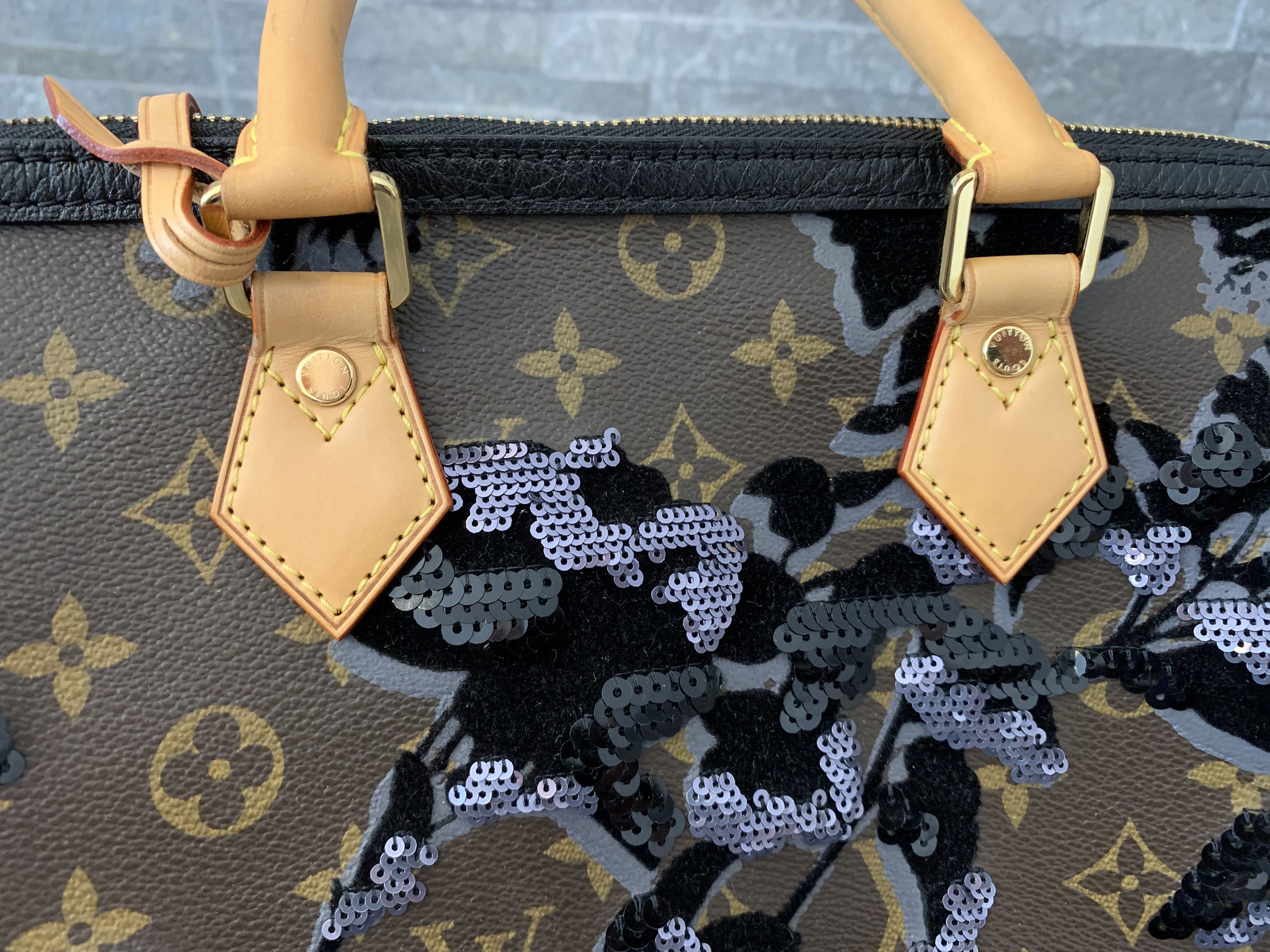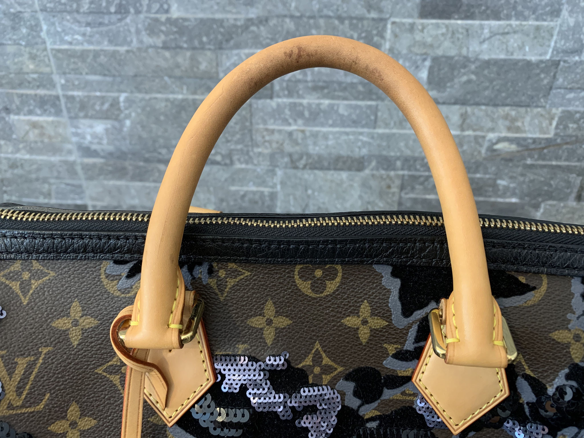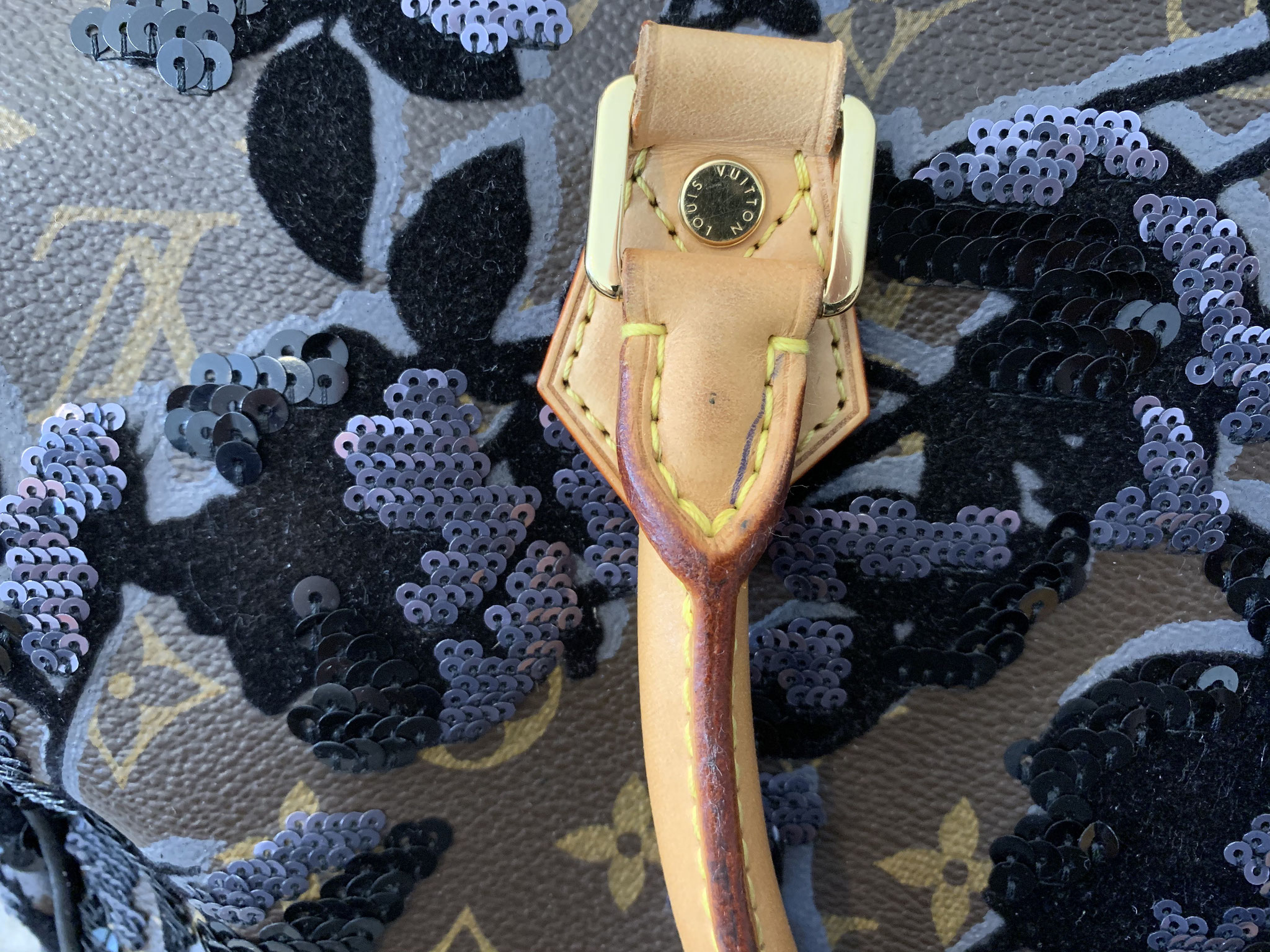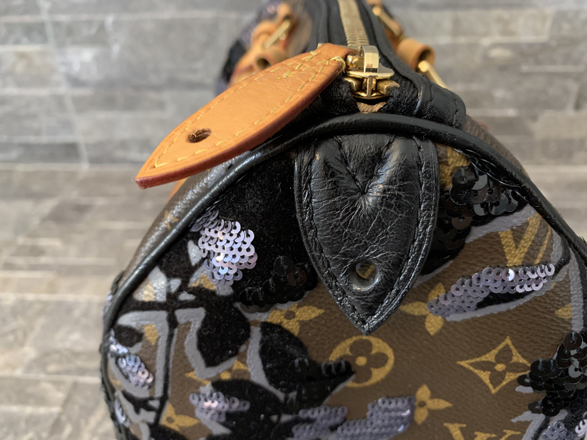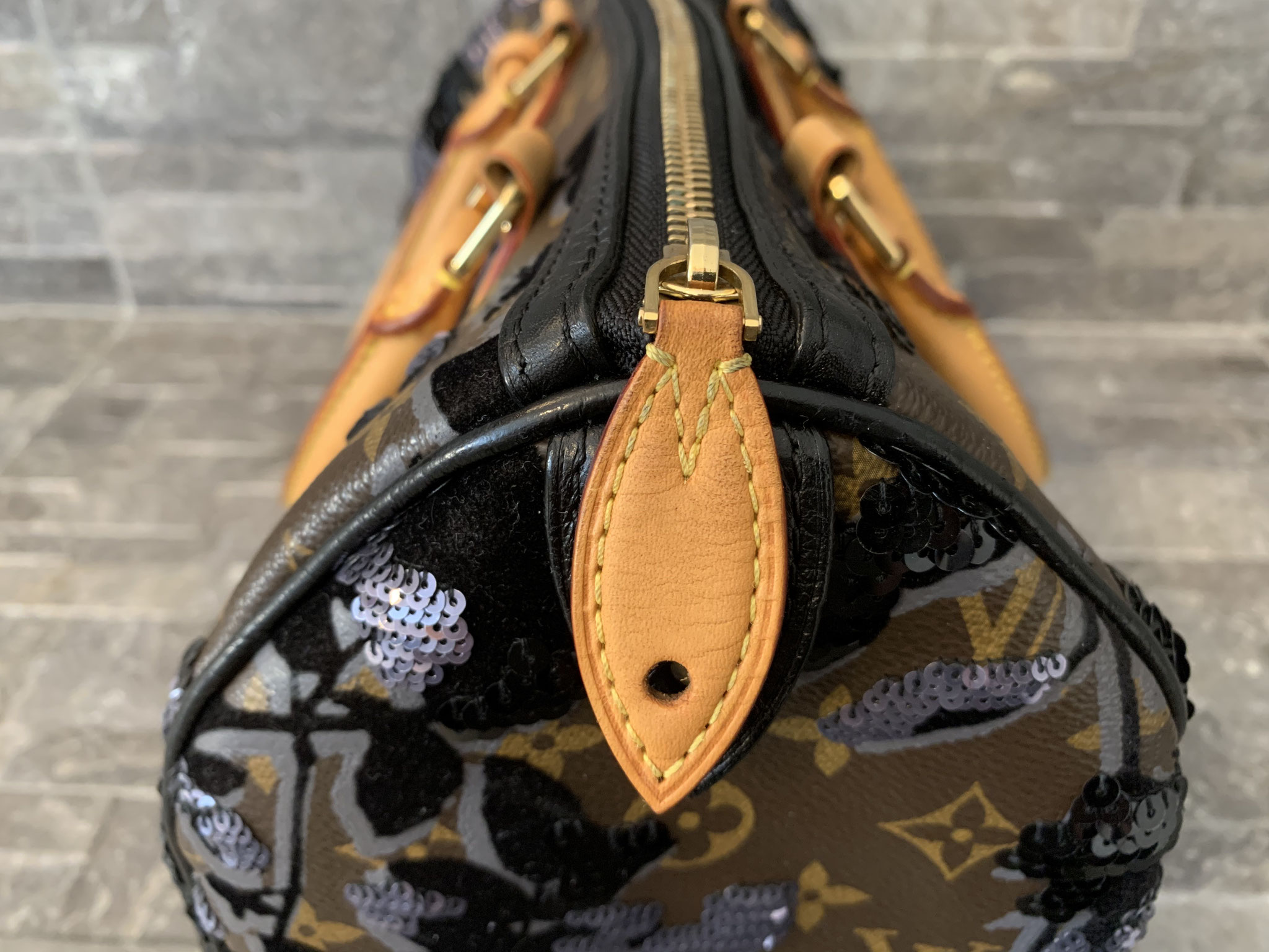 Louis Vuitton Monogram Fleur De Jais Speedy 30, abnehmbares Schlüsselglöckchen, Schloss, 1 Schlüssel