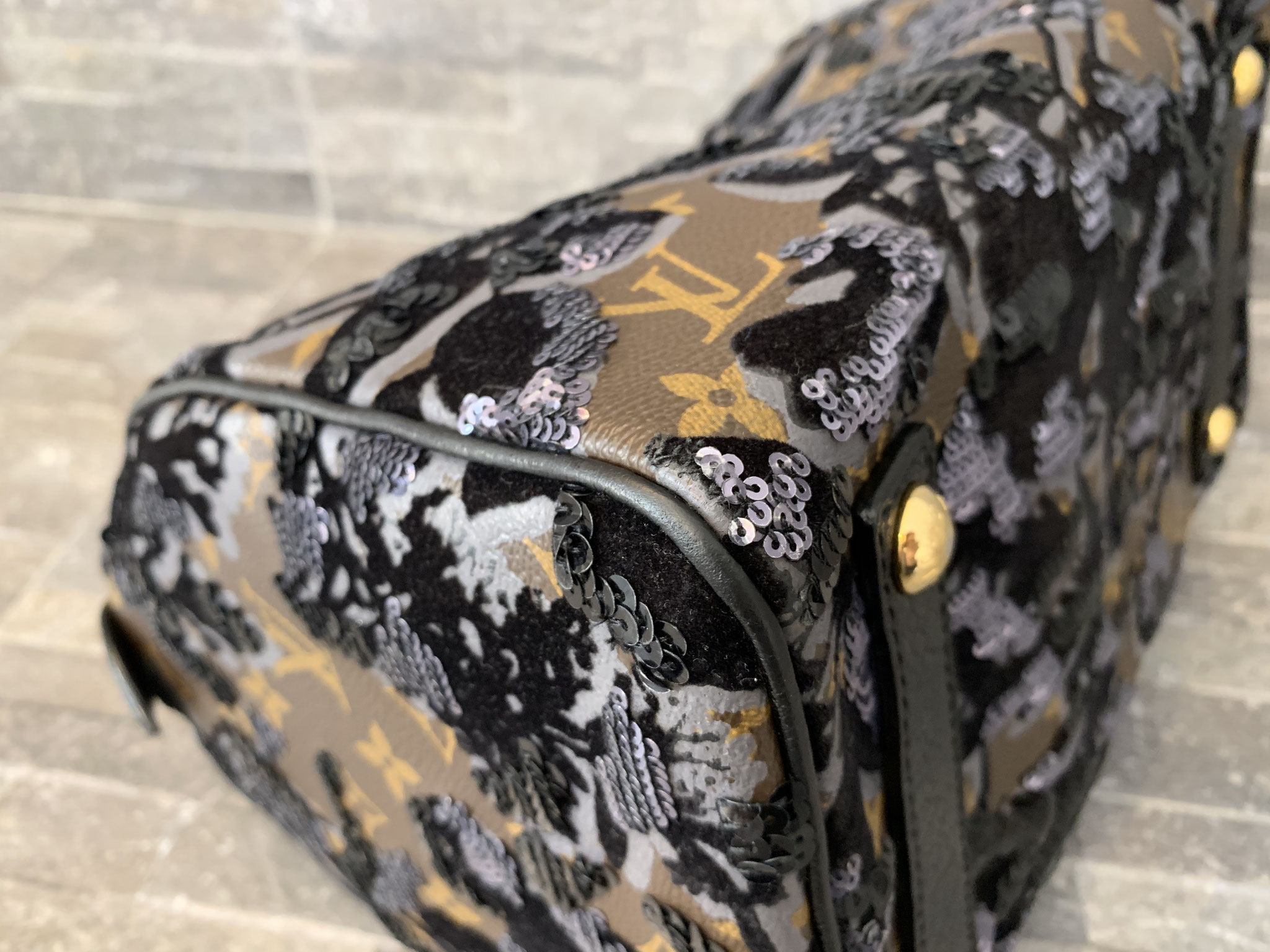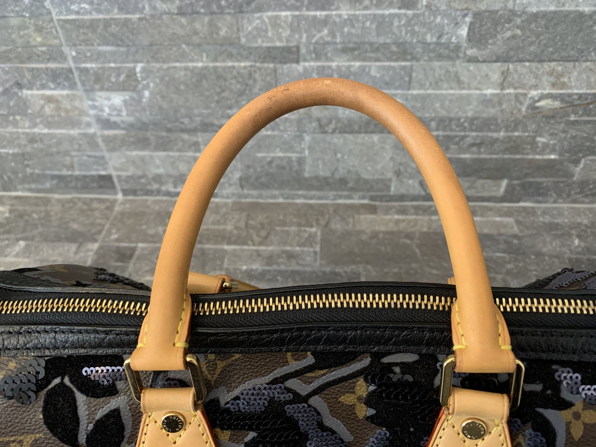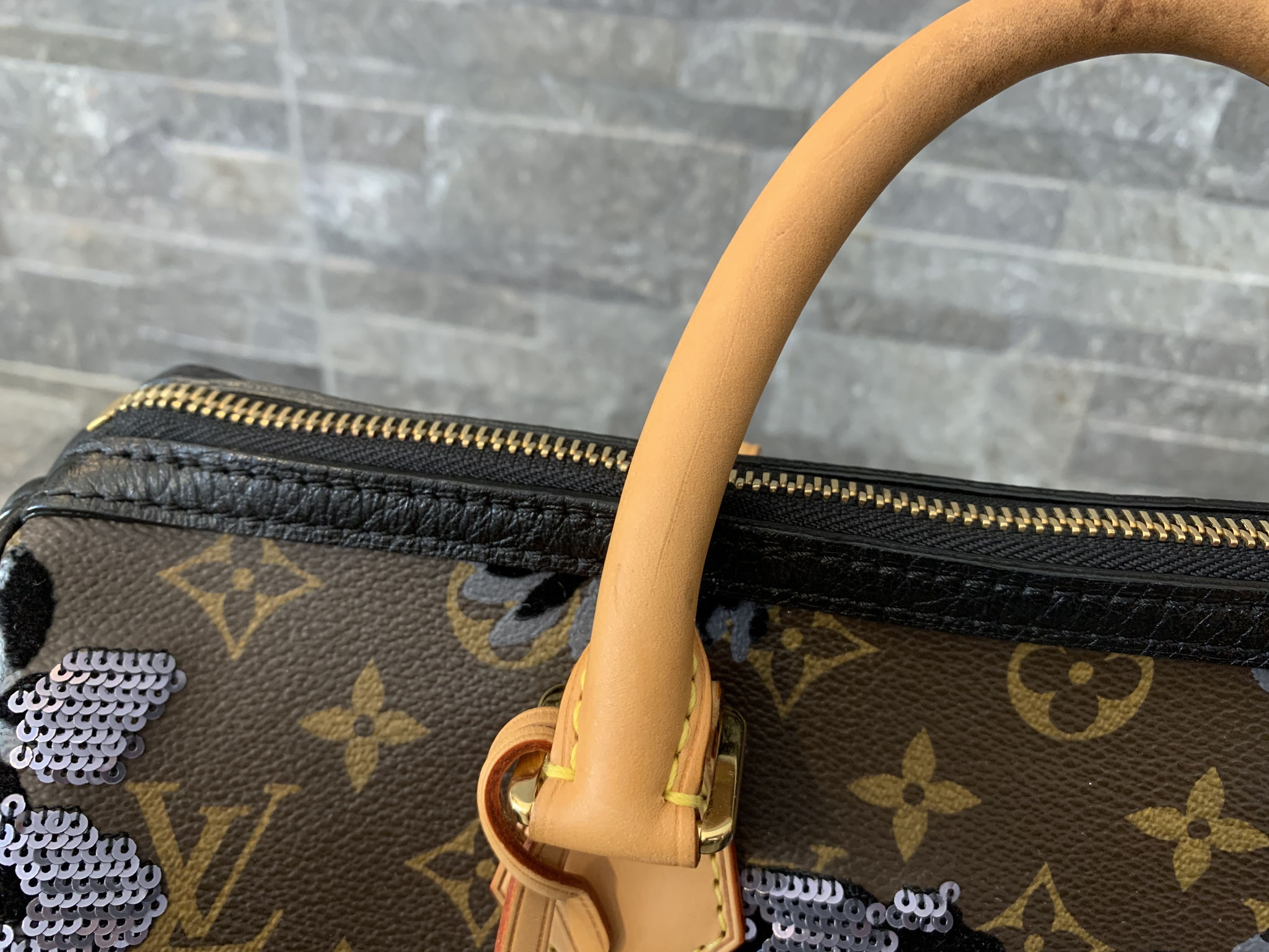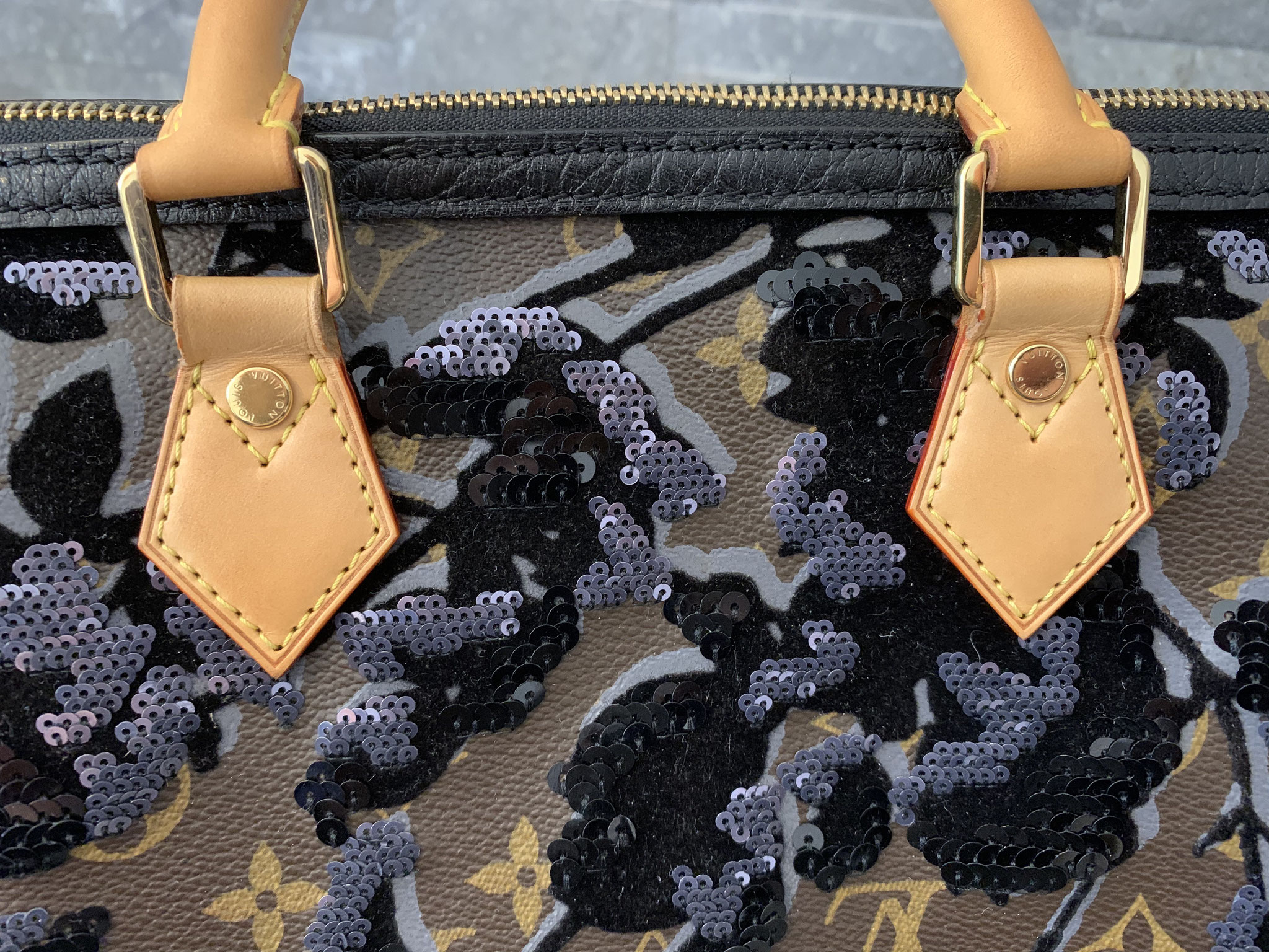 Louis Vuitton Monogram Fleur De Jais Speedy 30, abnehmbares Schlüsselglöckchen, Schloss, 1 Schlüssel