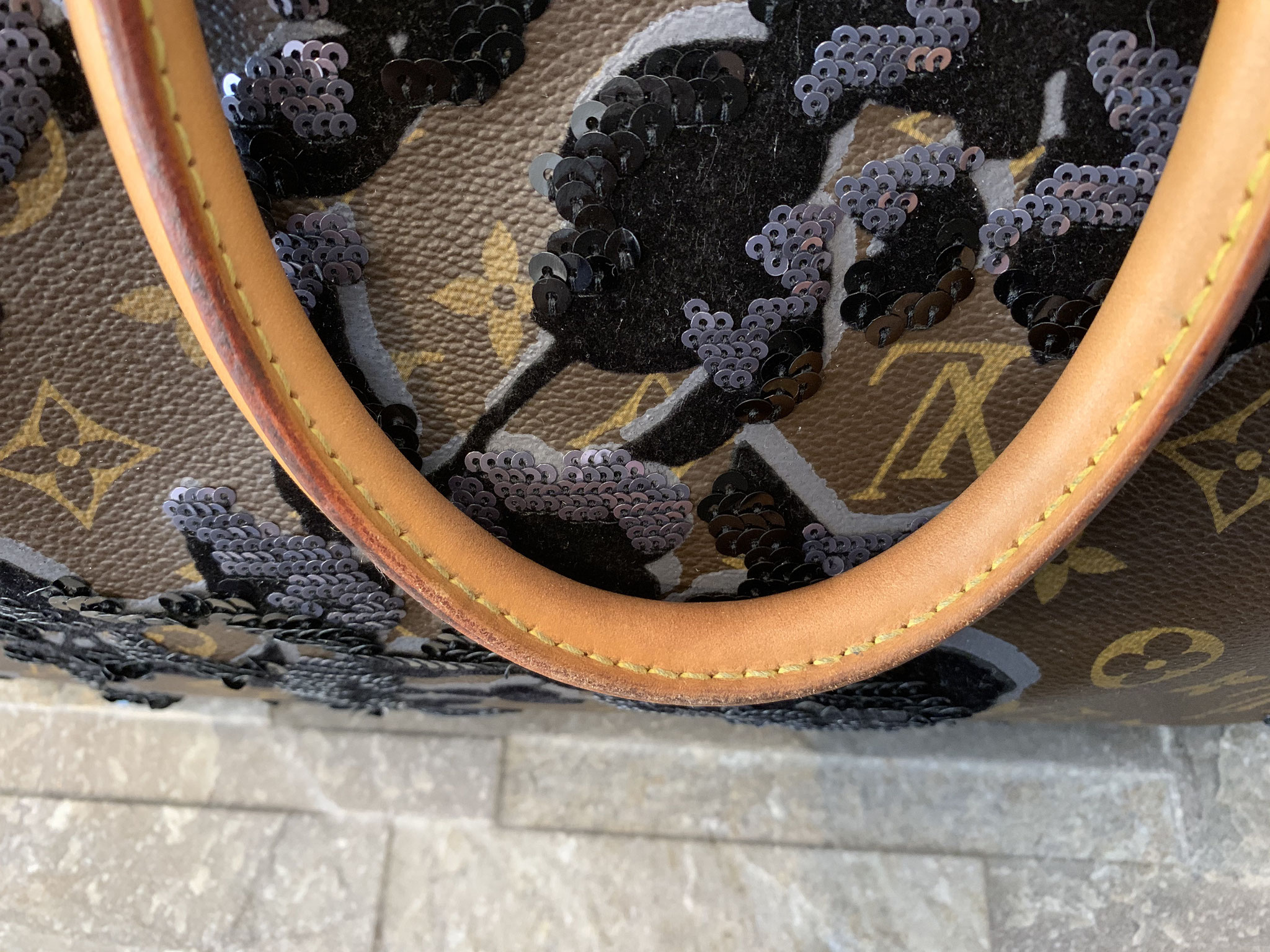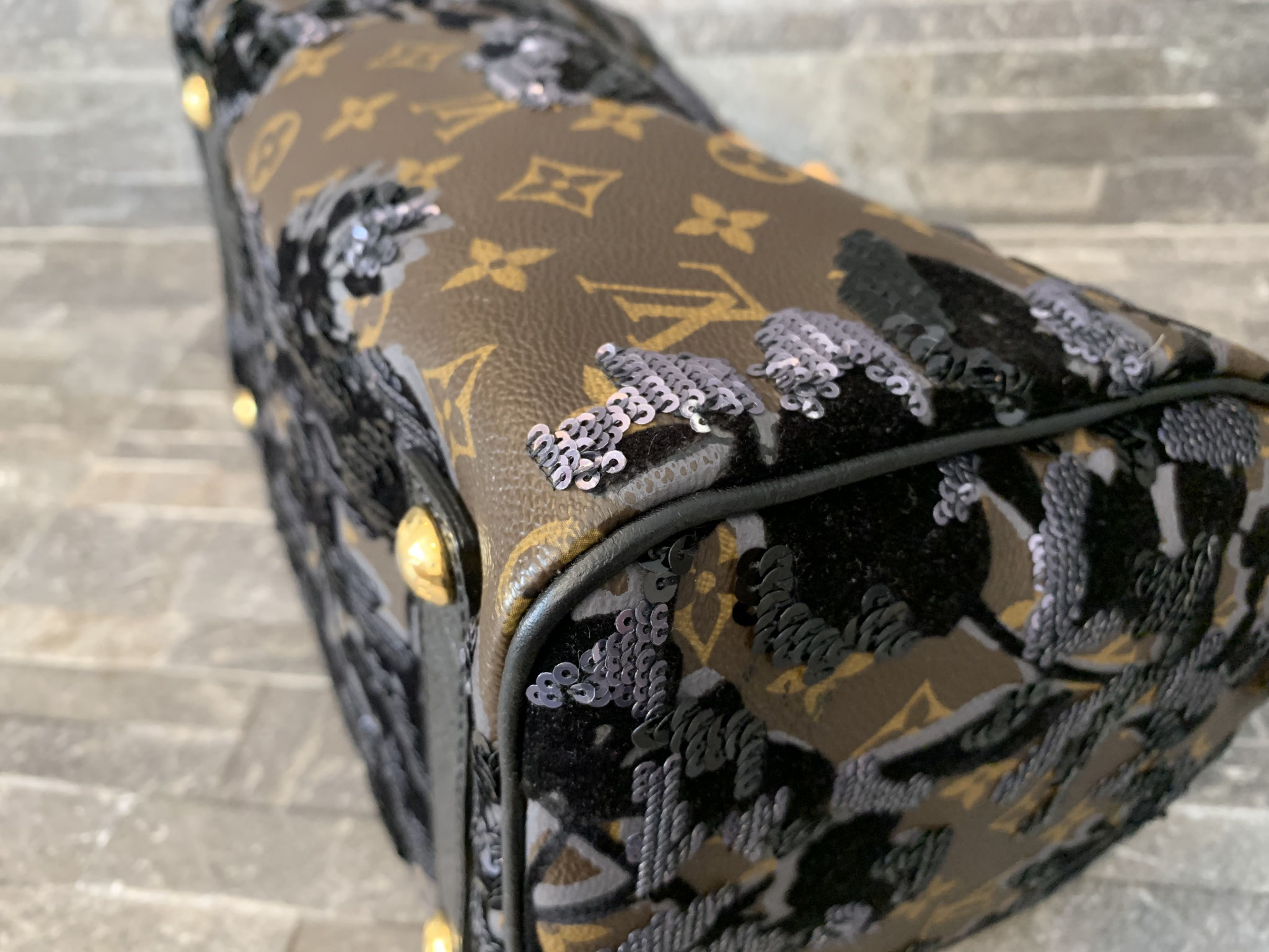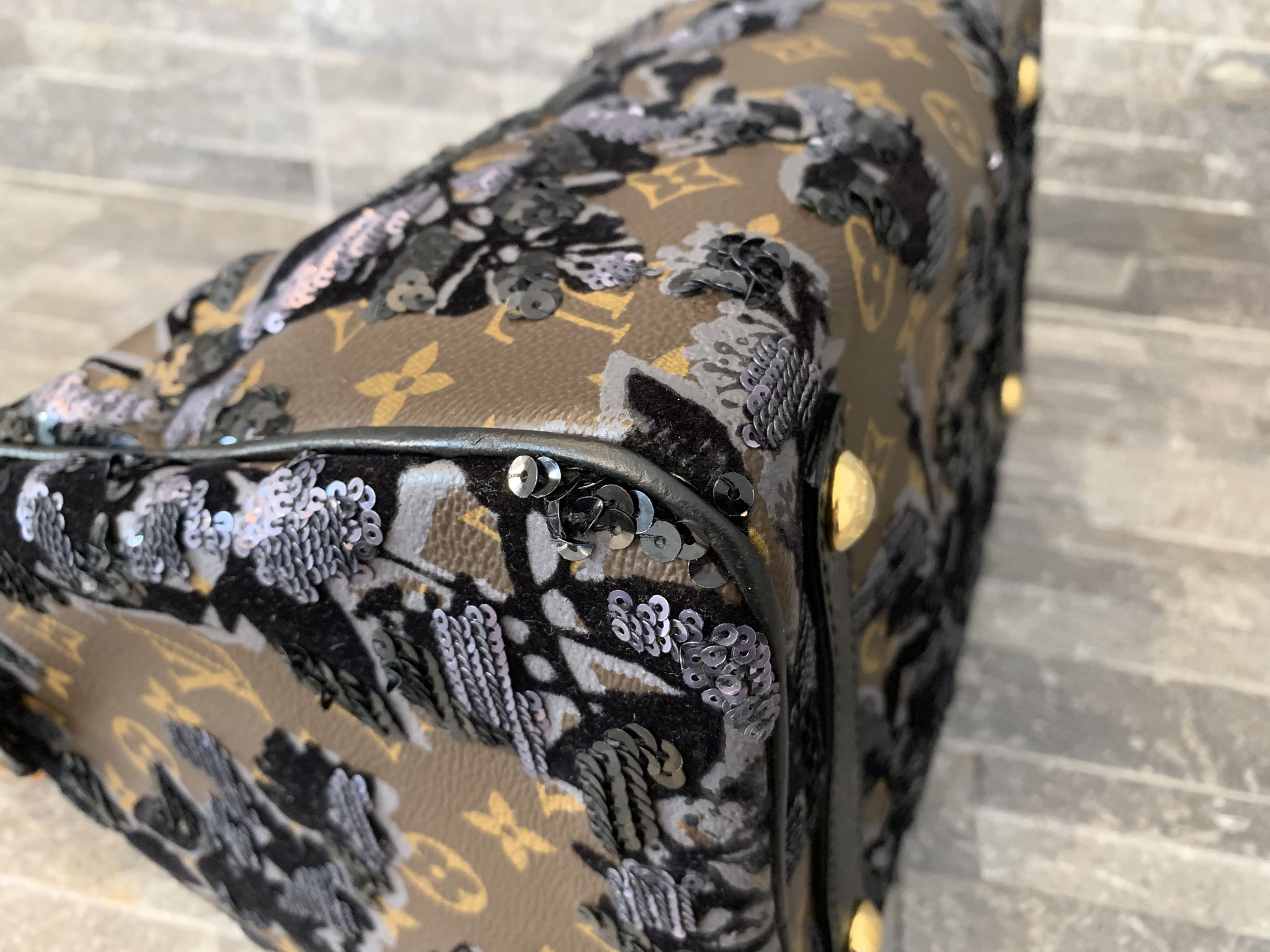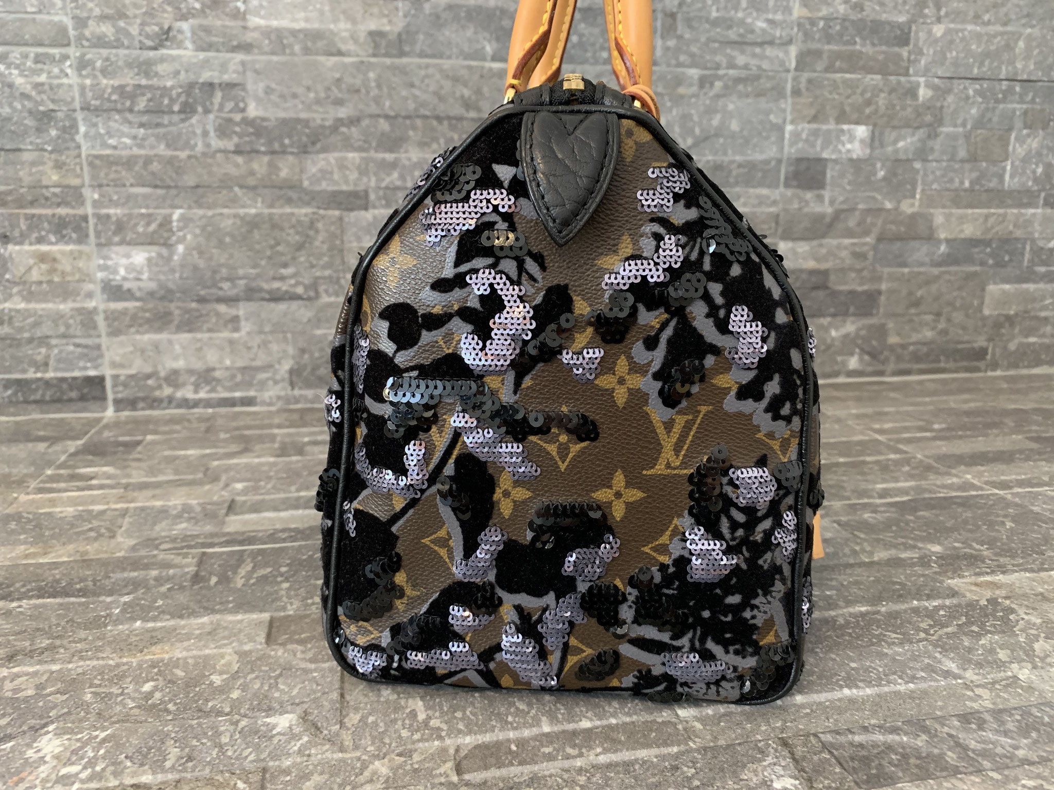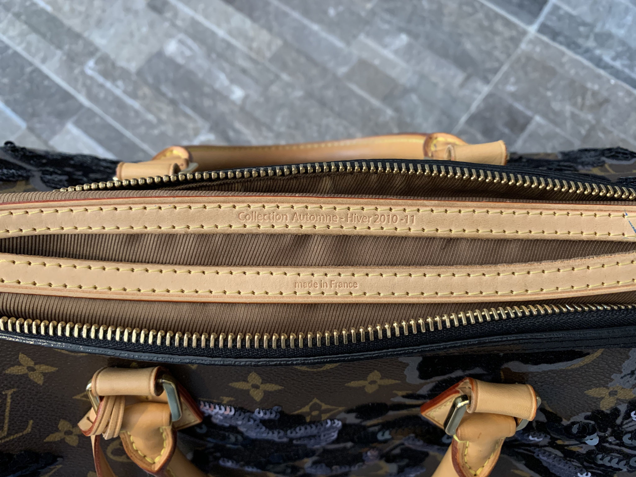 Louis Vuitton Monogram Fleur De Jais Speedy 30, abnehmbares Schlüsselglöckchen, Schloss, 1 Schlüssel