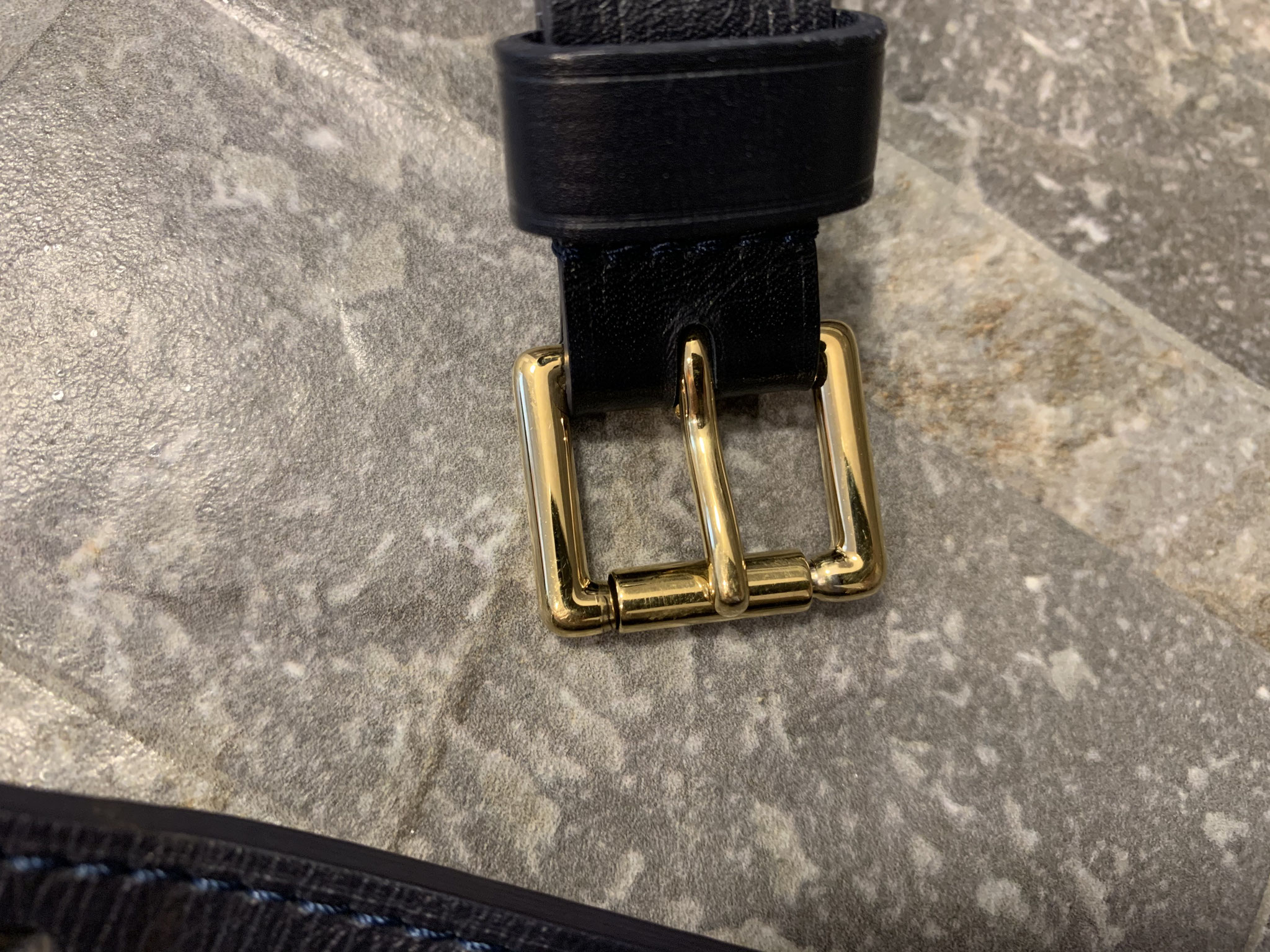 Die goldfarbenen Metallbeschläge zeigen kleine Kratzer und im Innenraum sind hier und da kleine helle Stellen vorhanden.