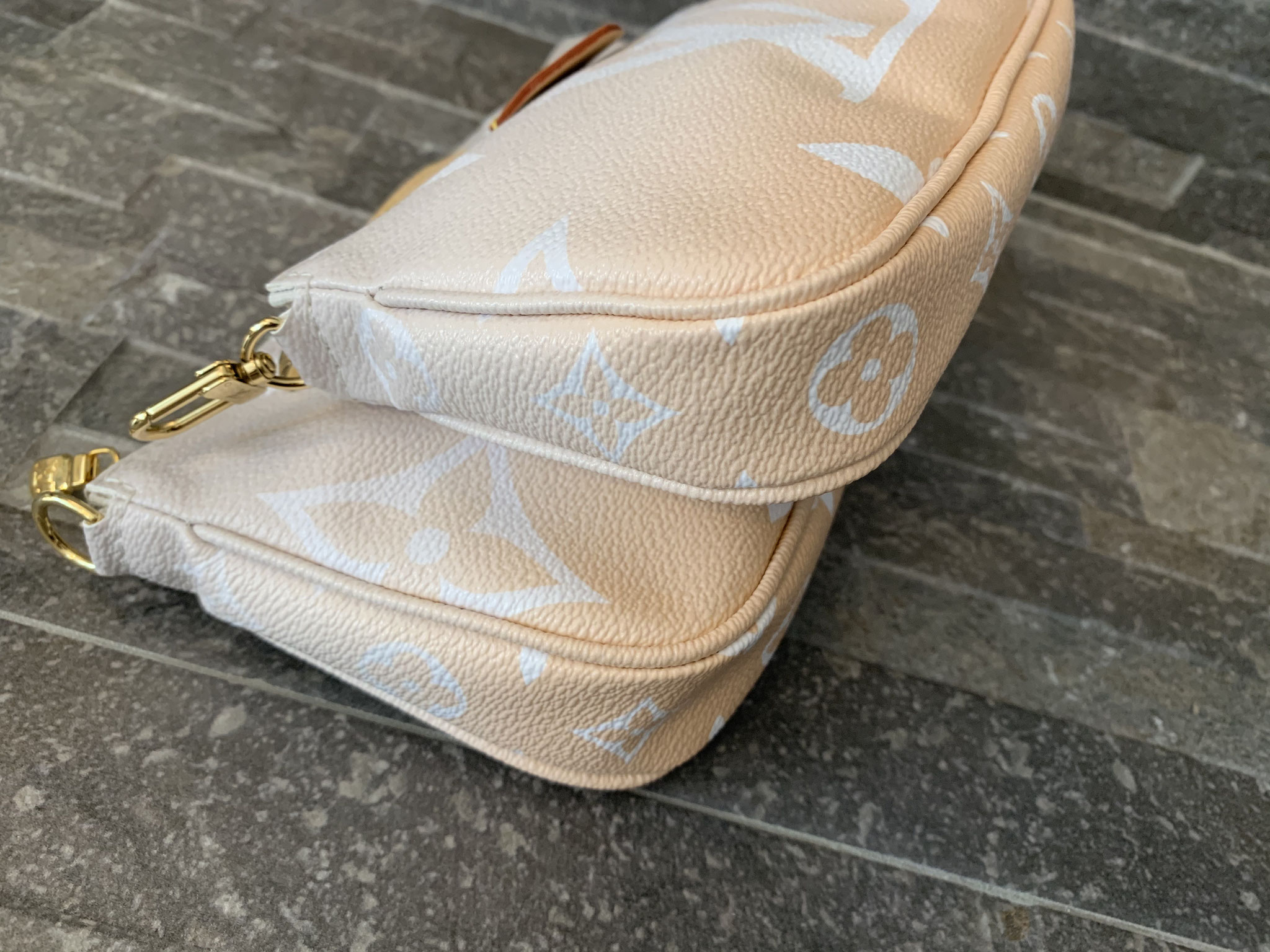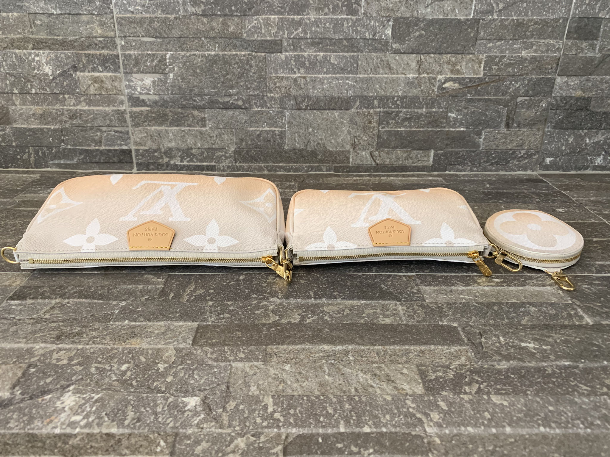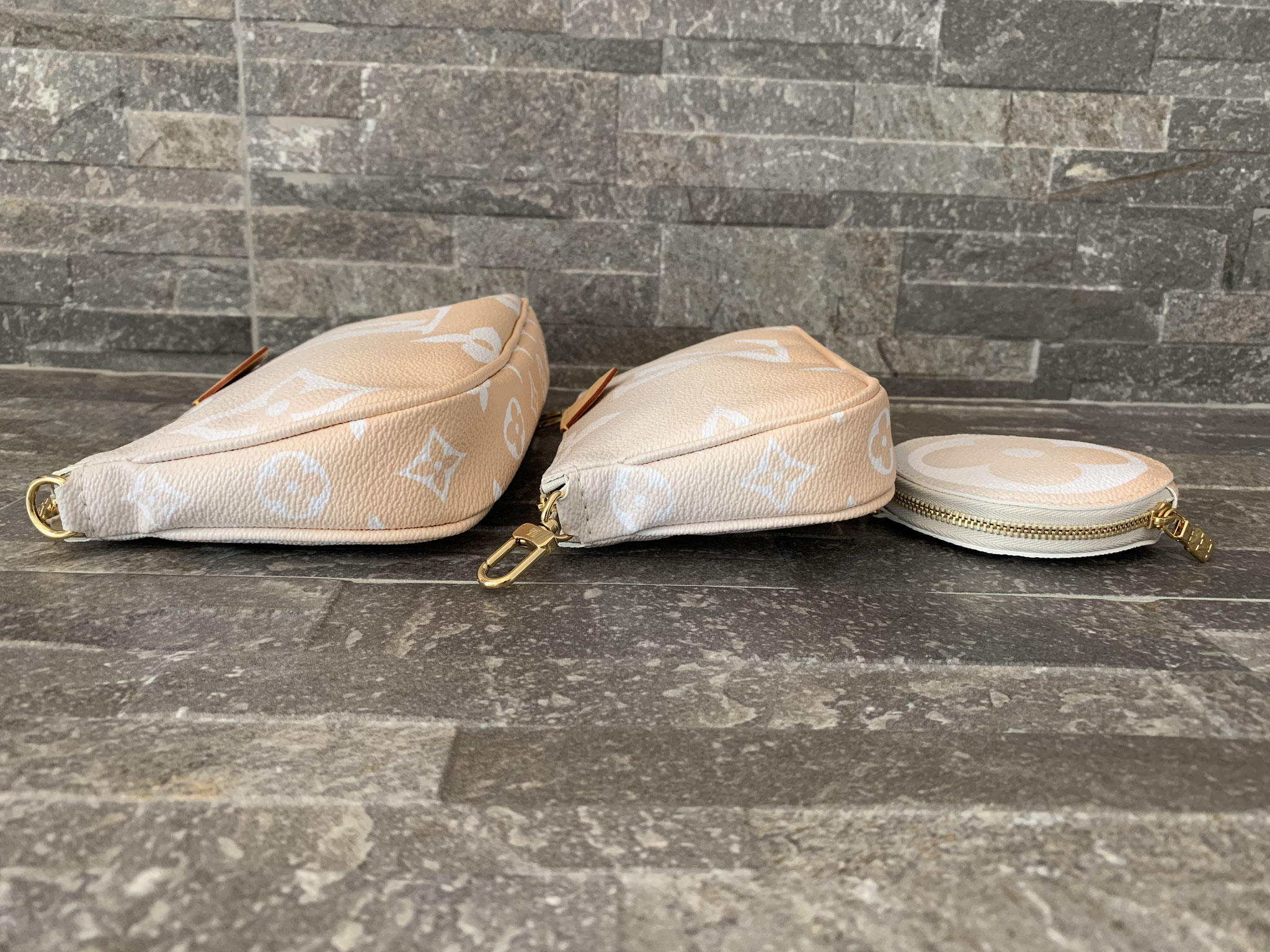 Louis Vuitton Monogram By The Pool Multi Pochette Accessoires in Nebelweiß (Pochette Accessoires, Kleine Pochette Accessoires, Round Coin Purse, Jacquard-Schulterriemen, Kette aus goldfarbenem Metall)