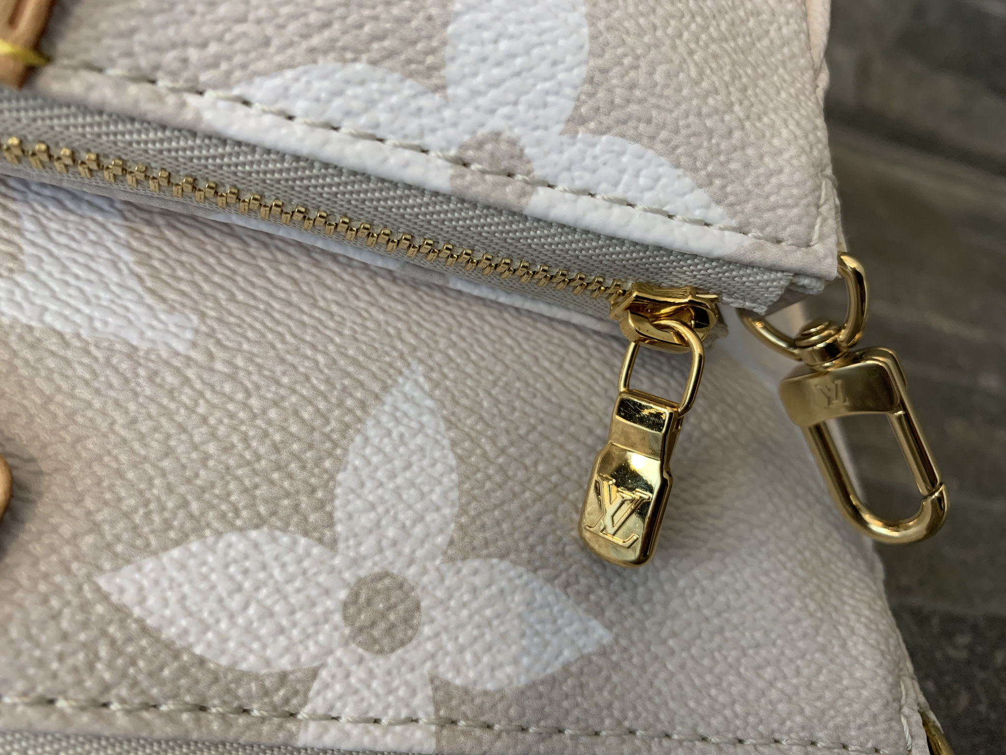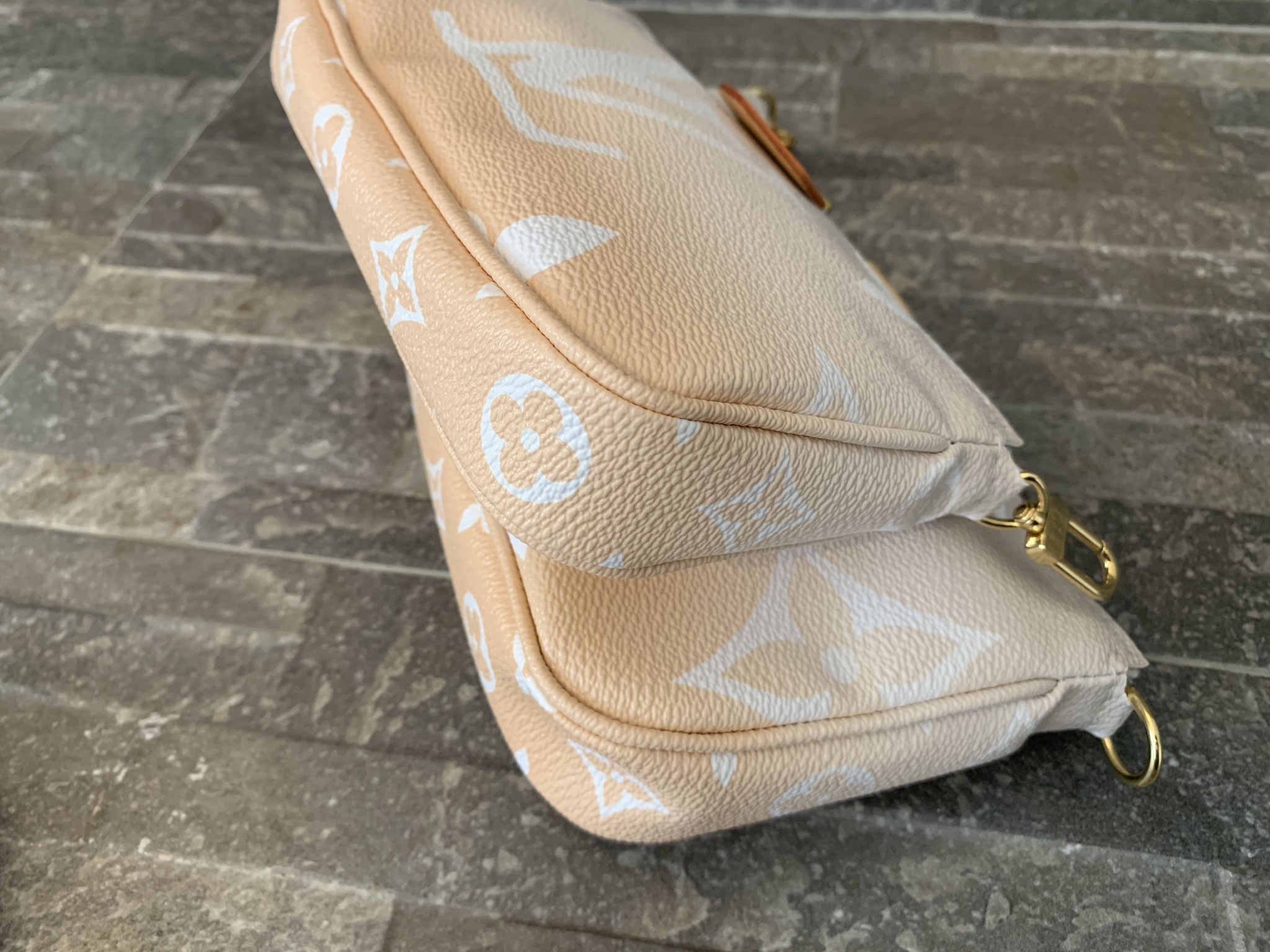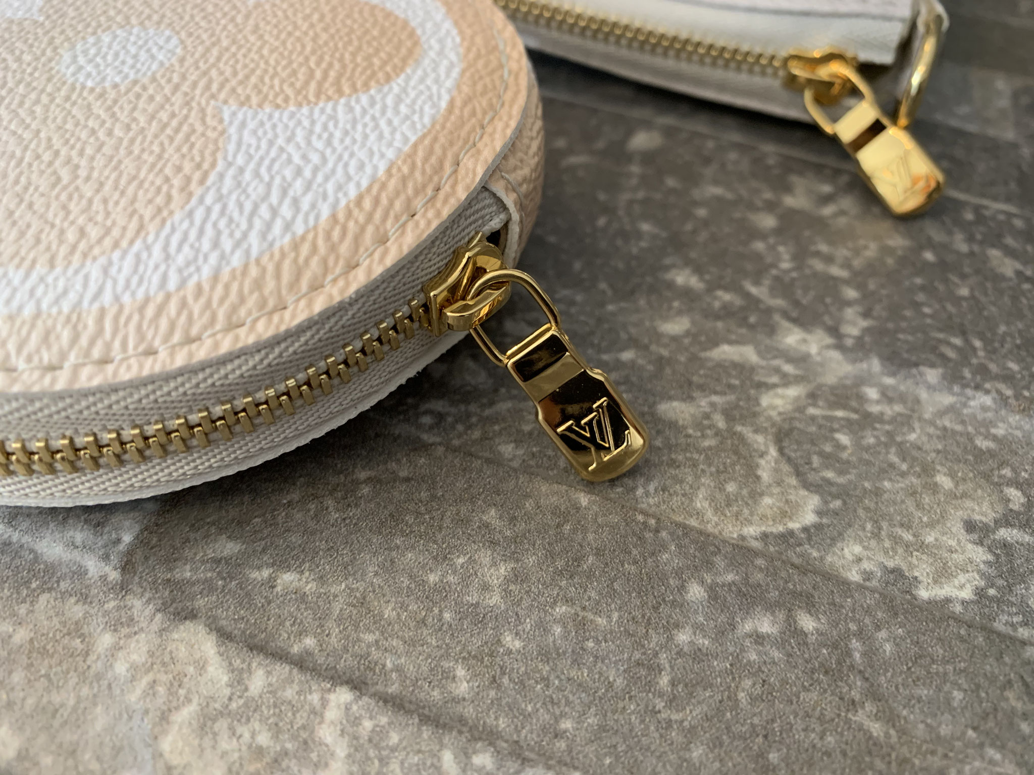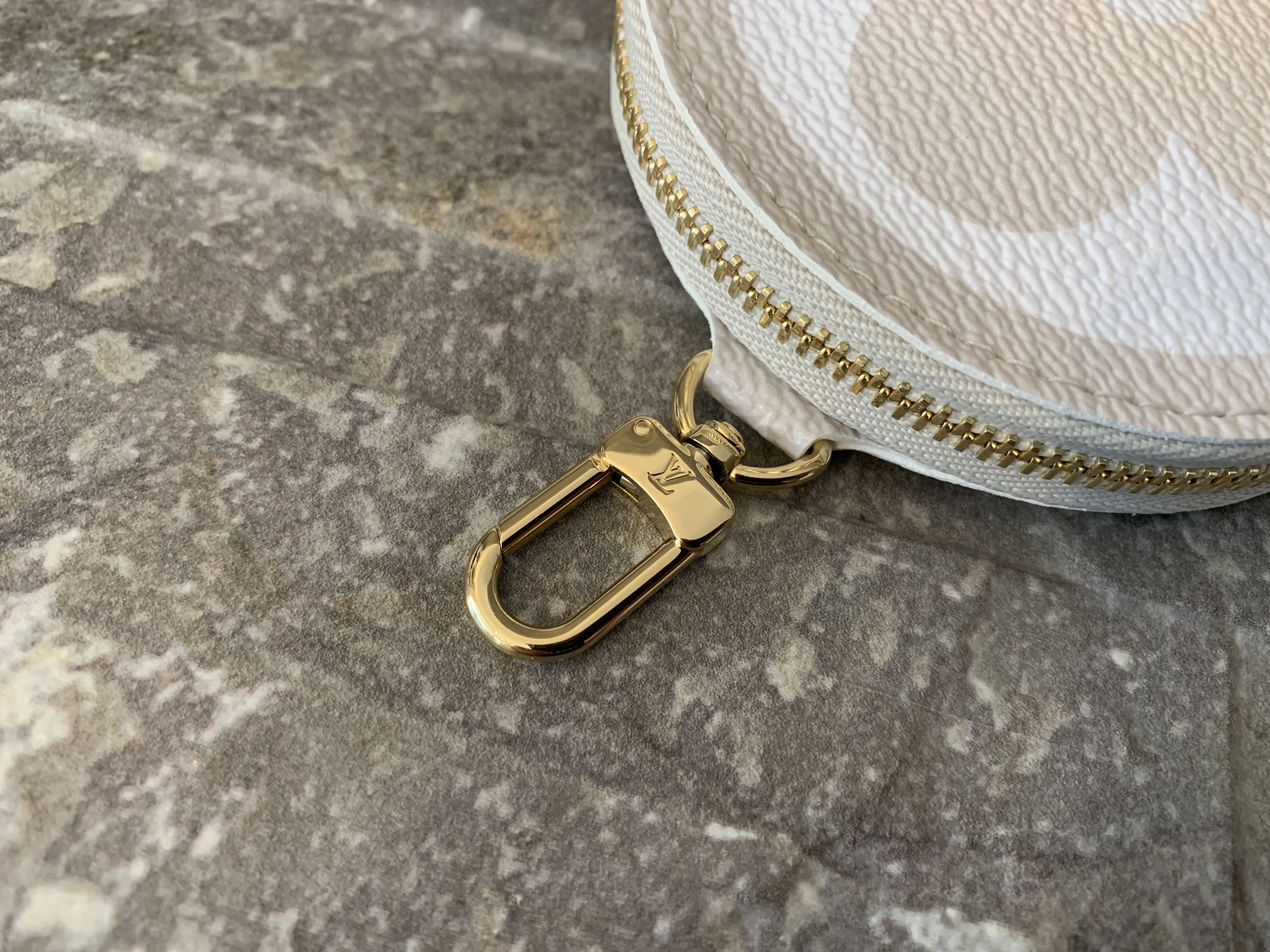Louis Vuitton Monogram By The Pool Multi Pochette Accessoires in Nebelweiß (Pochette Accessoires, Kleine Pochette Accessoires, Round Coin Purse, Jacquard-Schulterriemen, Kette aus goldfarbenem Metall)