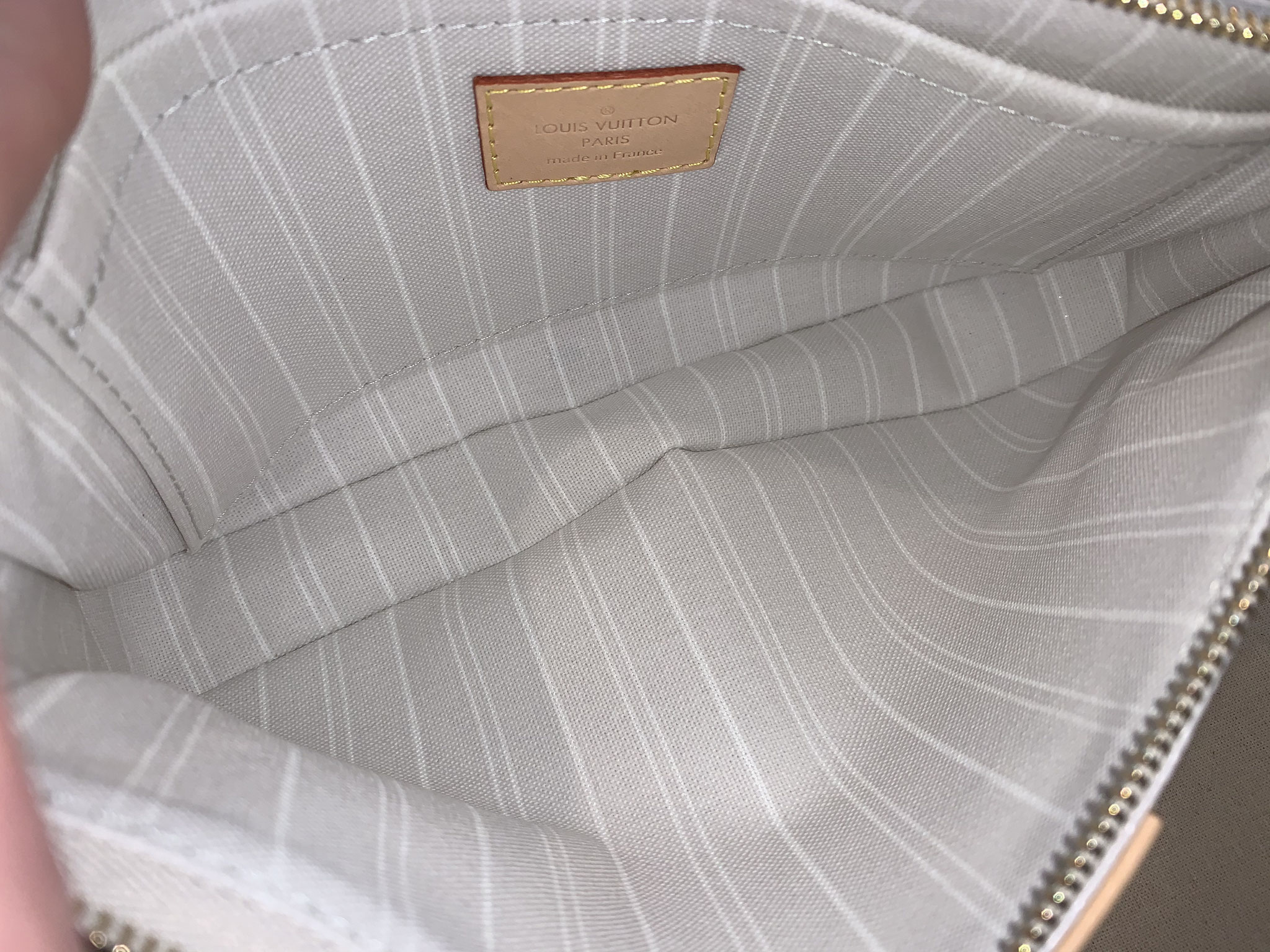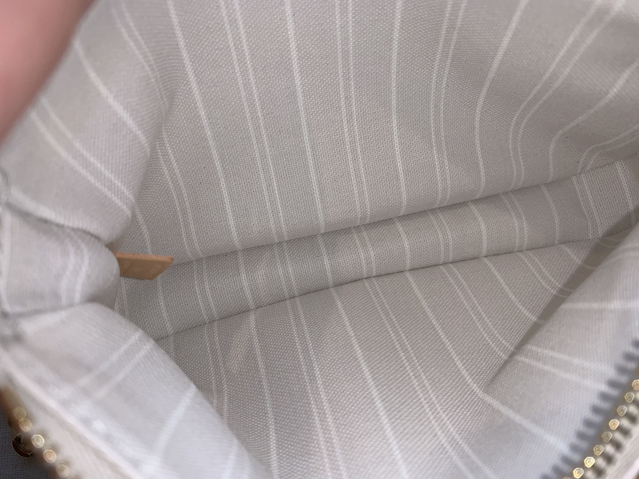 Es sind hier und da nur wenige kleine Kratzer an den goldfarbenen Metallbeschlägen und wenige Gebrauchsspuren am VVN-Leder vorhanden.